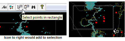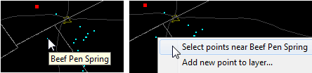 •Select Features by Location: To view or edit the attributes of point features shown on the map, right-click on a plotted symbol and choose Select points near... from the context menu.